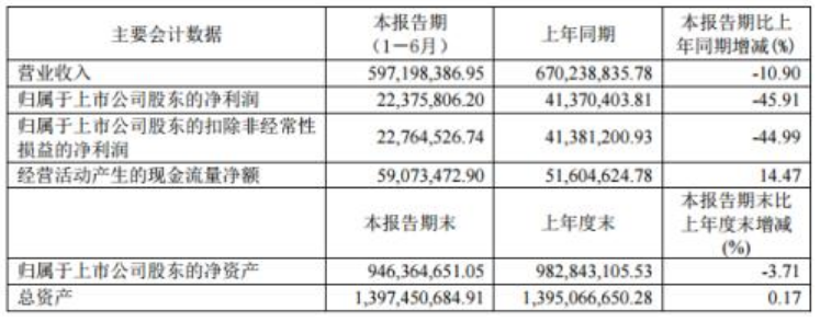 截止2020年6月30日,报告期末公司资产总计为1,397,450,684.91元,较上年度末增长0.17%;归属于挂牌公司股东的净资产为946,364,651.05元,较上年度末下滑3.71%。