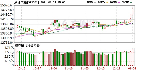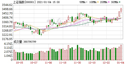 A股今日迎来新年开门红,沪指收盘上涨0.86%,收复3500点大关,收报3502.96点;深成指上涨2.47%,收报14827.47点;创业板指大涨3.77%,站稳3000点大关,收报3078.11点。两市成交额突破一万亿元,今日达到1.16万亿元。行业板块多数收涨,农业、军工、酿酒板块领涨。北向资金今日小幅净卖出5.42亿元。