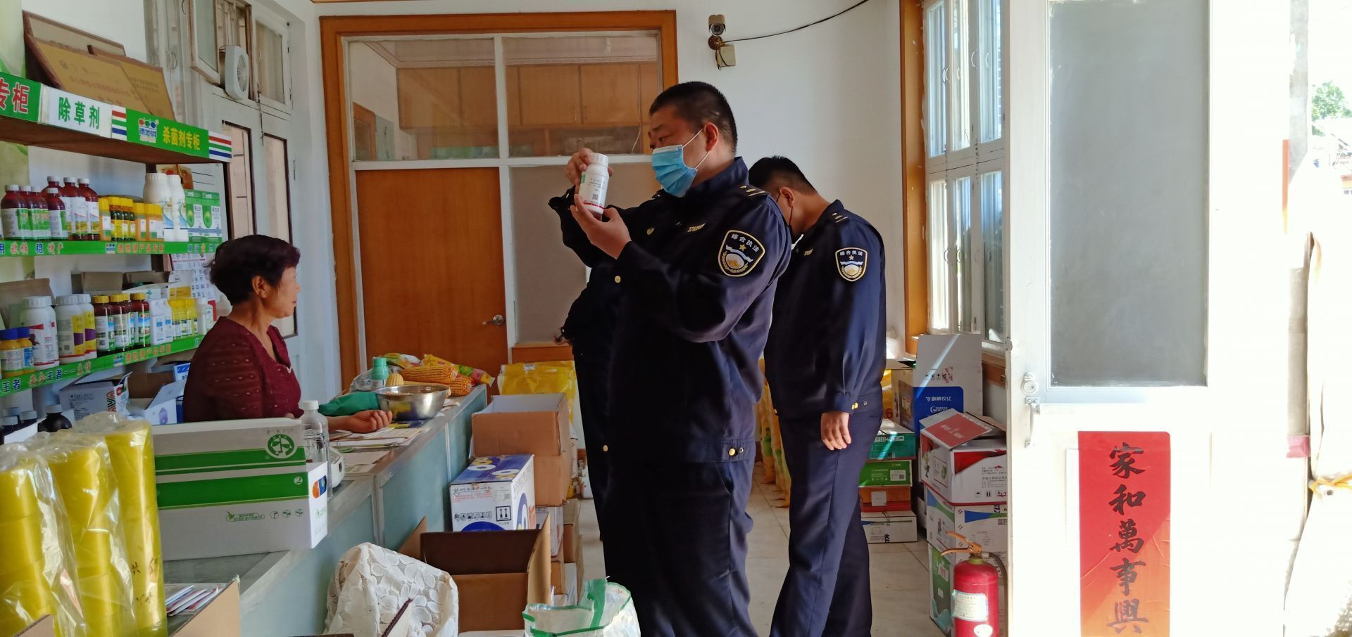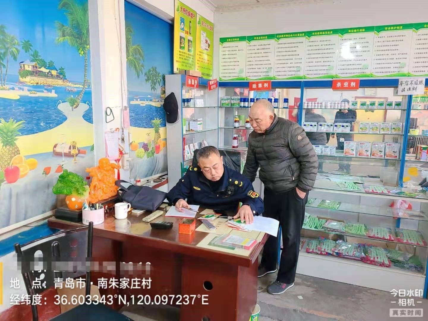 胶州市执法人员在一家农资经营店检查农药经营情况