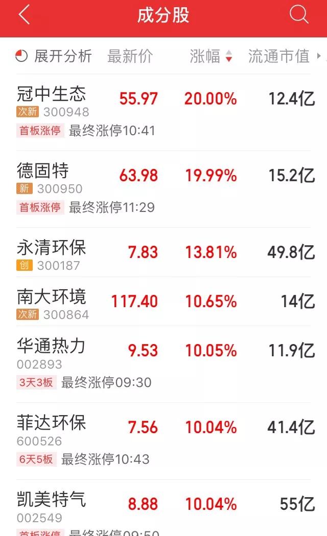 盘面上,碳中和概念再度全线活跃,板块指数也大涨逾5%,板块内冠中生态、华骐环保等13只个股涨停。节能、环保、碳交易、风能等细分板块涨幅居前,化纤、酿酒、有色等板块跌幅居前。