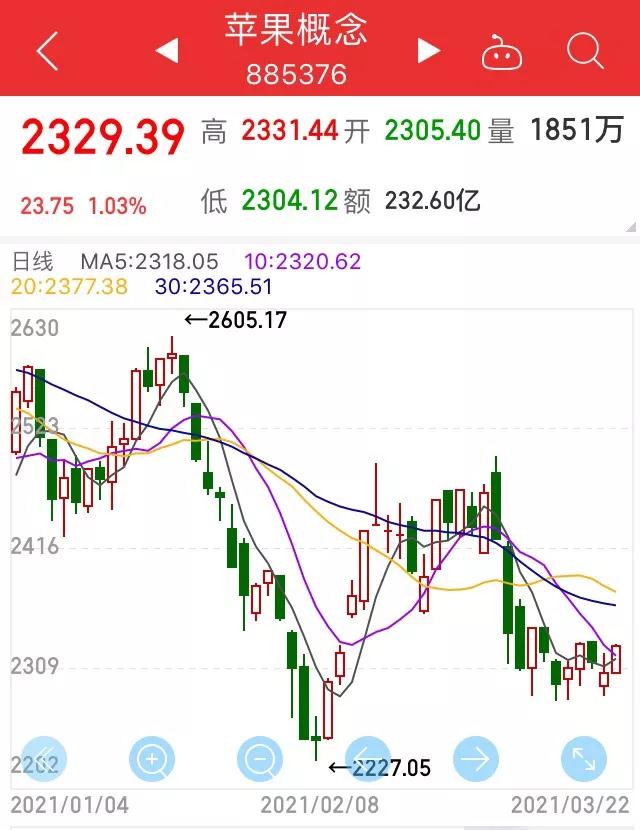 同花顺数据显示,整个苹果概念从1月高点至今下跌了11%。