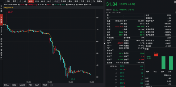 多家媒体的报道显示,先行者资本持仓中包括维亚康姆哥伦比亚、Farfetch以及多只中概股等。受此影响,中国在线教育公司跟谁学上周股价腰斩。周一,跟谁学再受重创,收盘报31.84美元,下跌18.38%。