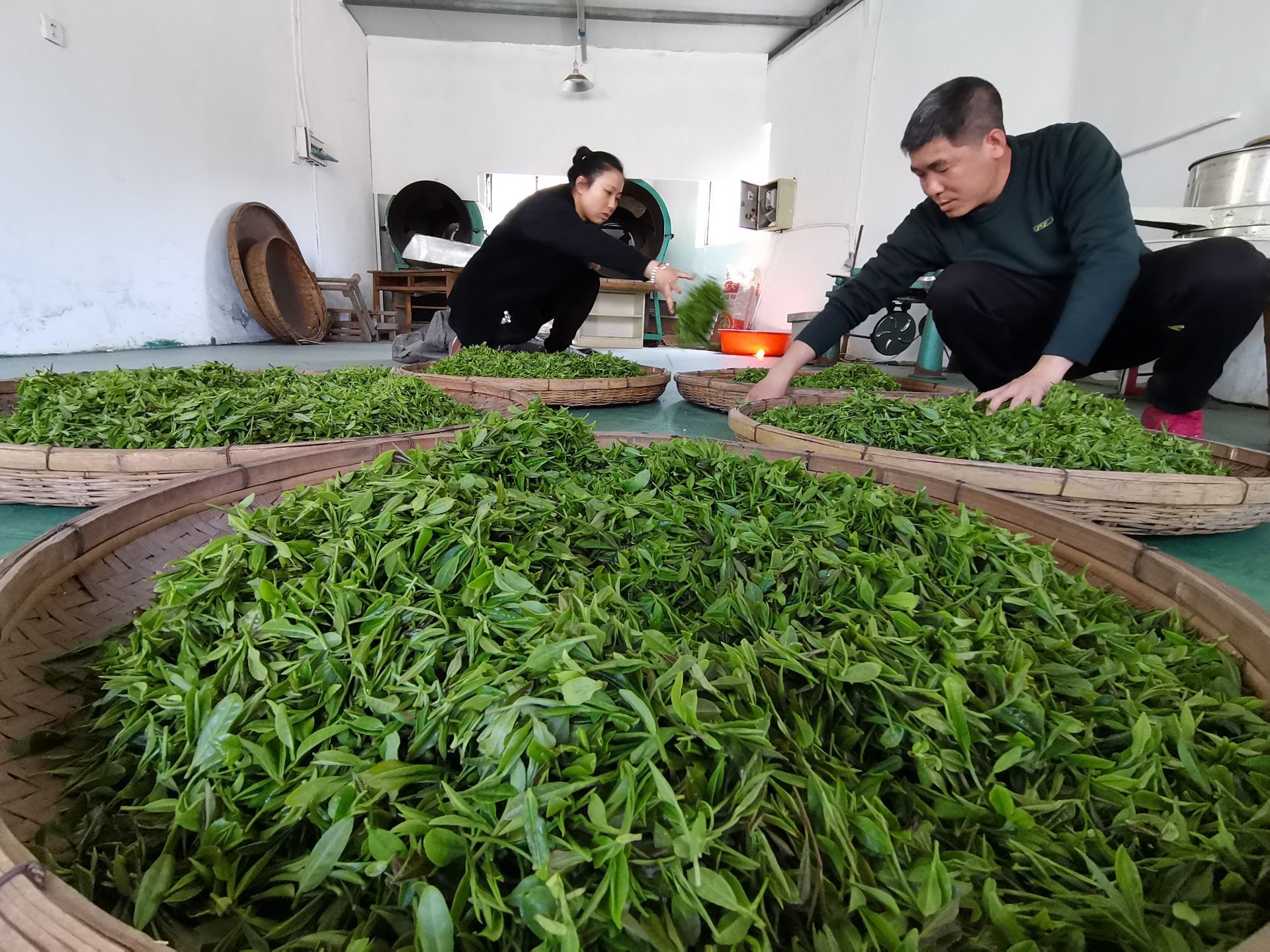 3月初,大棚茶就已经开始陆续采摘,比南方真正的明前茶还要提前上市。 “赶在大田茶采摘前,大棚茶已经采摘了好几茬了。 ”鳌角石村一名茶农介绍,他们这里的大棚茶已经采摘了5茬,每亩产量虽然不高,但每斤鲜茶的价格最高能卖到120元。随着采摘量增大,现在的每斤鲜茶价格在40元到50元之间。等大田茶大量上市后,茶农就会拆除大棚薄膜。记者在鳌角石村的大棚茶田内看到,茶农鲁大嫂和几名茶农提着工具,两个多小时收获30多斤鲜茶,刚刚采摘下来的鲜茶就被茶商收购。