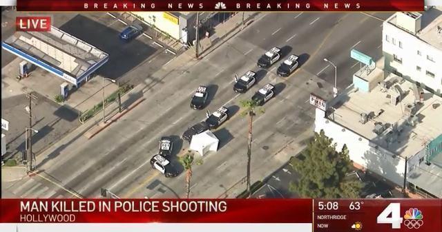 美国好莱坞发生枪击案,1人死亡 2021-04-25 09:53 0 美媒视频截图 当地时间4月24日,美国洛杉矶警局表示,位于好莱坞的日落大道发生1起涉及警察开枪的枪击事件,致1名男子当场死亡。 据美国媒体报道,枪击事件发生在当日14时30分左右,目前涉事路道已被双向封锁,案件正在进一步调查中。 来源:央视新闻