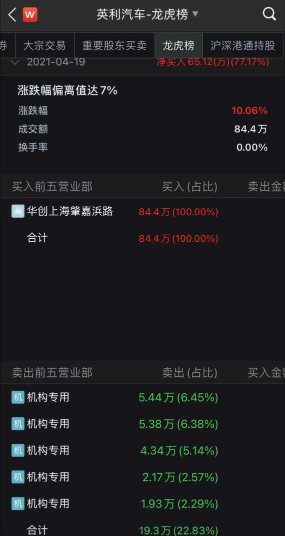 综合来看英利汽车4月15日以来的龙虎榜,可以发现,在公司股票上市交易初期,机构席位更多地占据了卖出前五席位,卖出金额并不大。