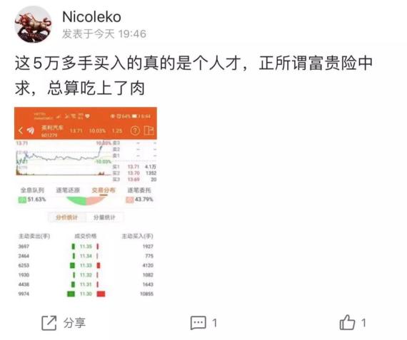 在英利汽车刹不住的涨停之势下,更是闪现知名游资身影。有股民卖掉近期涨幅巨大的*ST众泰,高位追入英利汽车。也有网友感叹“富贵险中求,总算吃上了肉”!