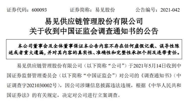 在被证监会调查前,易见股份还因未按时披露年报收到了上交所火速下发的问询函以及云南证监局的责令整改决定书。
