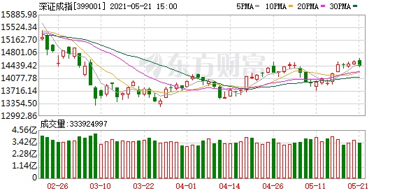 截止收盘,上证指数报收3486.56点,下跌20.38点,跌幅0.58%。成交额3560亿。深证成指报收14417.46点,下跌117.64点,跌幅0.81%,成交额4520亿。创业板指报3113.26点,下跌30.36点,跌幅0.97%,成交额1559亿。沪深两市,个股上涨2085只,下跌2114只,涨停81只,跌停22只。