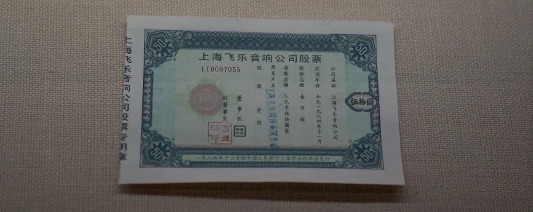 印有“上海飞乐音响公司股票”字样