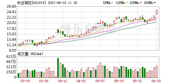 中远海控股价也是水涨船高,由2020年5月底的低点3.14元开始一路上扬,按今日午间收盘价25.03元计算,累计大涨逾696%。而按38元目标计算,仍有约52%的潜力空间。