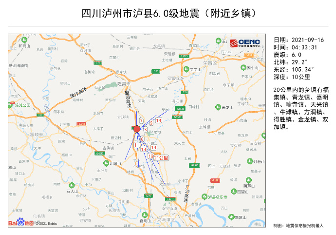 新华社快讯:中国地震台网正式测定:9月16日4时33分,在四川泸州市泸县(北纬29.2度,东经105.34度)发生6.0级地震,震源深度10公里。