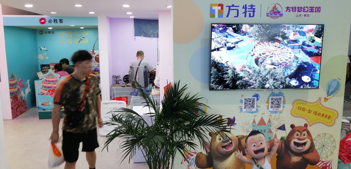《漫游·文旅之路》展区结合青岛特色文旅品牌,通过品牌墙互动、特色文创、网红墙打卡等形式展示青岛品牌文化。近年来,青岛大力推进全域旅游工作,涌现出一批文旅品牌,西海艺术湾、青岛银行文创支行、阿朵文旅小镇、动车小镇·功夫动漫、青岛方特、青免国际(跨境免税店)等等各具特色。此外,展区里还有1:1制作的著名网红墙——青岛的大学路鱼山路路口,它是近年非常火的网红打卡胜地,成为了展区的人气打卡点。