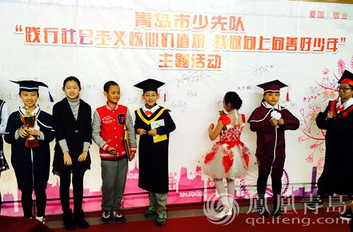 本次活动分为两个篇章。第一篇章进行了形式新颖的“红毯秀”活动,2015年李沧好少年和参与青岛王埠小学核心价值观微电影拍摄的少先队员盛装出席,在主题板上郑重签下自己的名字,表达了对践行社会主义核心价值观,我做向上向善好少年的决心。