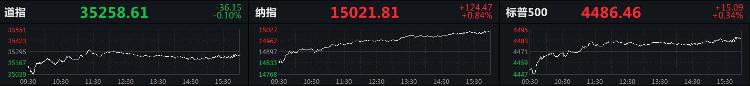 中新经纬10月19日电 美东时间周一(10月18日),美股三大指数涨跌不一。截至收盘,道指跌0.10%,报35258.61点;纳指涨0.84%,报15021.81点;标普500指数涨0.34%,报4486.46点。盘面上,大型科技股普涨,能源股、银行股涨跌不一。