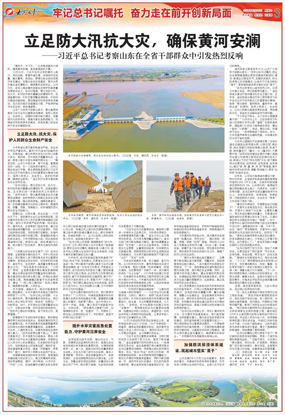 山东广大党员干部群众表示,要认真贯彻落实习近平总书记重要讲话精神,坚持人民至上、生命至上,加强防灾减灾能力建设,完善现代化防洪体系,提高灾害应急救援能力,加强城市防洪排涝体系建设,构筑沿黄人民生命财产安全的稳固防线。