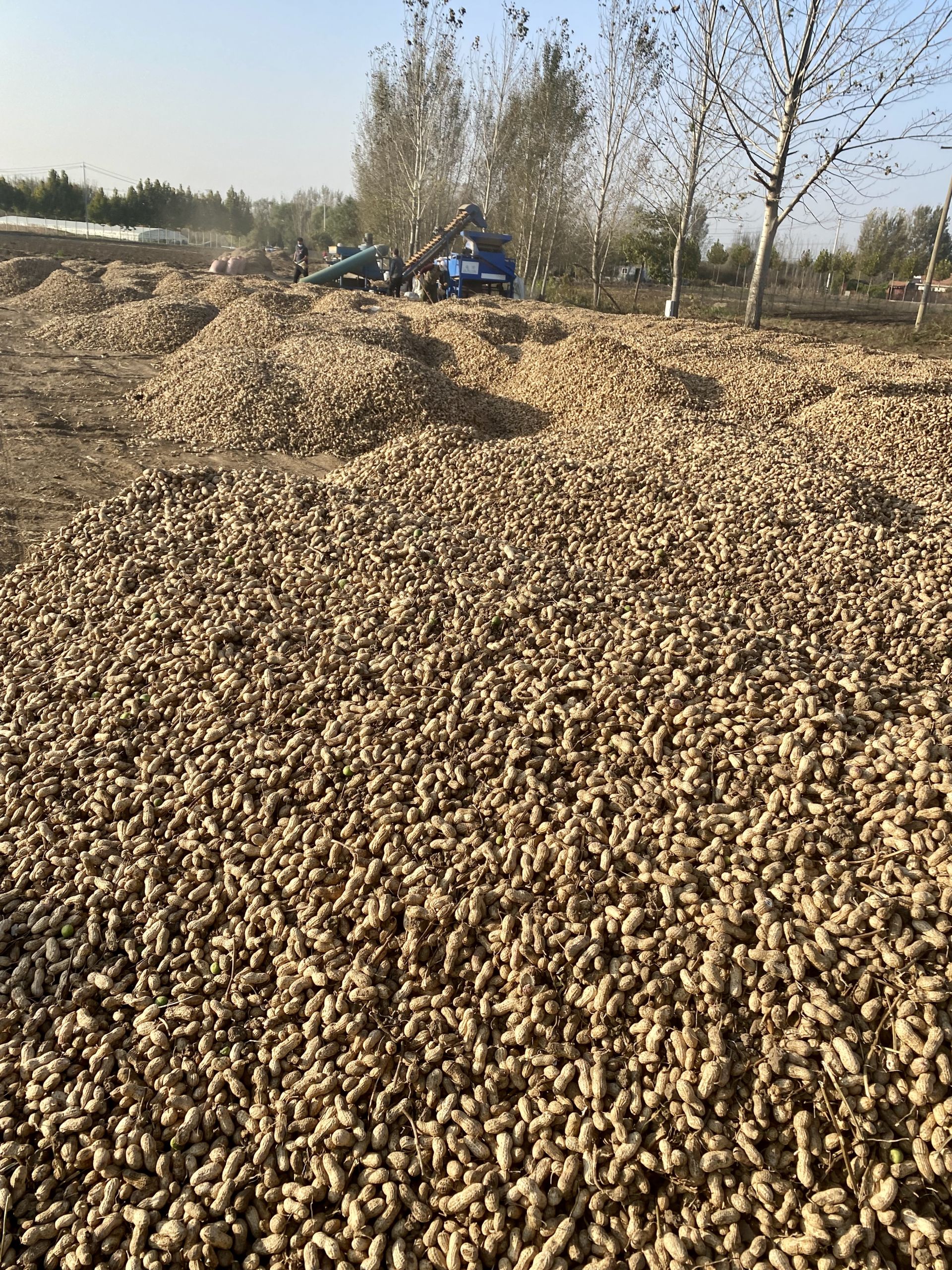 近日,灵山街道花生育种基地的260亩高油酸花生正在进行收获,现场一行行、一株株硕果累累的花生在专用联合收割机、果粒分拣机操作下,很快变成了一颗颗雪白的花生果,果实堆成了一座座小山......