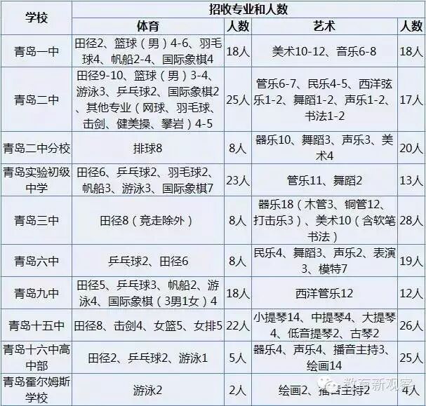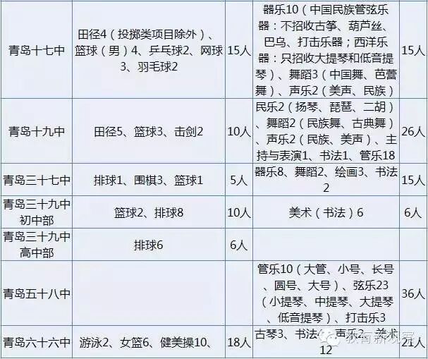 近日,青岛市教育局公布2016年局属普通中学体育艺术特长生和局属中学足球后备人才招生计划,各学校将于2016年春季开学后两周内在学校网站等发布本学校2016年体育艺术特长生或足球后备人才招生的具体专业、人数及选拔方式、招生工作安排等事宜,并长期保留,方便家长查询。