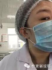 首先来到的是青岛57中学,进后厨之前,我们被要求全副武装。附主持人半脸“靓照”一张。