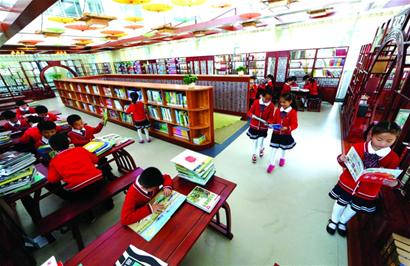 昨日上午,记者来到青岛枣山小学,刚走上二楼,就被眼前的“枣山书苑”四个大字所吸引。“这是我们的图书馆,和其他学校不同的是,除了面积大,我们的图书馆从来不上锁,学生随时可以到里面阅读。”青岛枣山小学校长刘岩林介绍说,“枣山书苑”共有两层,面积近200平米。书苑一楼是现代书吧,除了藏书,还有几十台电脑,供学生检索使用,学生可以进行网上阅读和资料搜集、观看电子书籍及影视作品。目前,他们正在安装电子借阅系统,学生人手一张借阅卡。书苑二楼则是充满书香古韵的阅读区,里面的桌椅摆设都采用实木。书苑目前的藏书量近10万册,全部由学校购买或教师捐赠。