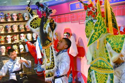 俏丽的青衣、娇艳的花旦、花脸的武生……一走进北京密云区第三小学的京剧艺术坊,就如同走入了京剧院的后台,四五名小学生正在巴掌大的模具上,用毛笔细细地勾画着京剧脸谱,在他们身后的装饰墙上,则挂着巨幅的京剧美人像。 “京剧是我们的国粹,是中国的名片,北京又是京剧的发源地,所以我们小学选择京剧主题做了艺术坊。 ”来自密云三小四年级的邵珗堃,一边手下勾勒着关公的胡须,一边滔滔不绝地向记者介绍他们学校的京剧主题艺术坊。
