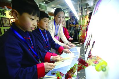 “话说师徒三人来到了火焰山……”在不远处的河北省乐亭县第三实验小学皮影艺术工作坊里,一场好戏正在上演。老师和同学们摆弄着唐僧、孙悟空、猪八戒、沙和尚的皮影造型,用河北方言演绎着光影版的《西游记》,吸引了众多的嘉宾驻足。在皮影舞台的一侧,4个小学生正趴在小方桌上,在驴皮上雕刻、敷彩。 “从2008年起,皮影艺术就纳入了我们的校本课程,每天设置40分钟的皮影相关课程,孩子们除了学习皮影表演、皮影雕刻、皮影染色外,我们还开发了皮影操、皮影舞蹈等一系列课程。 ”学校美术老师栗冬娜说,为了让乐亭皮影这一非遗传统文化在校园里焕发新生,他们还专门聘请了当地的皮影技艺传承人,担任全校师生的校外辅导员。