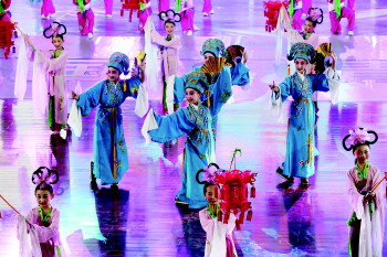 11日下午两点,在全国第五届中小学生艺术展演开幕式上,来自青岛65所学校的3900余名师生,给台下嘉宾带来了一场精彩纷呈的艺术盛宴。参加开幕式表演的学生,有来自市区学校的,也有来自农村学校的。他们都把这次盛会变成展示自我的舞台。