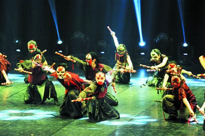 如果说香港代表队带来的是充满现代气息的舞蹈,澳门两支代表队则回归传统,用粤腔粤调演绎水浒传和京剧。澳门坊众学校表演的《水浒英雄――重生》中,舞者们头戴面具,扮作水泊梁山各好汉,重新讲述了水浒传这段传奇故事。舞者们用肢体语言,演绎战场上的双方厮杀、激烈搏斗,传递一将功成万骨枯的悲壮。灯光骤然暗下,正当现场观众纷纷沉浸在战争的残酷和同胞战死的悲痛中时,灯光突然亮起,原来战死的将士们纷纷重生,将现场的气氛推向高潮。