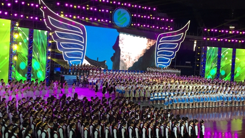 滑轮少年高举31省市代表队的牌子,学生们身着各具特色的民族服装,跳着欢快的舞蹈,开启了全国第五届中小学生艺术展演的大幕....4月11日下午,全国第五届中小学生艺术展演在青岛国信钻石体育馆隆重开幕。教育部副部长郝平,省委常委、青岛市委书记李群,山东省副省长王随莲,青岛市委副书记、市长张新起等出席开幕式。