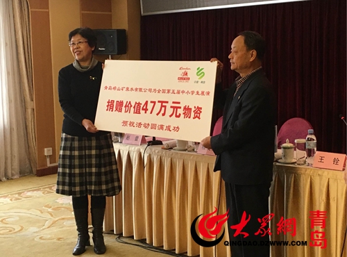 “青岛崂山矿泉水有限公司一直关注中小学生的健康成长,通过此次活动更可以向学生群体普及水知识、水文化,让他们牢固树立节约用水意识和健康饮水观念,培养饮用健康好水的习惯。”崂山矿泉水作为本届展演的指定饮用水,合计捐赠47万元物资,公司副总经理赵蕾在捐赠仪式上表示,自2015年初,崂山矿泉水便开始致力于“读百年文化 让健康伴成长”水知识进课堂活动,通过讲座、实验、绘本等多种形式向学生传递水知识,作为一个创新项目弥补了学生群体中水知识教育的空白,同时也让学生家长重视起饮水问题。