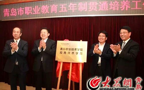 启动仪式上,青岛职业技术学院宣布成立青职院应用技术学院,与岛城15所中职学校合作,共同践行五年制贯通培养的新育人模式。青岛市教育局与青岛职业技术学院共同签署了五年制贯通培养合作协议,并为应用技术学院揭牌。“随着我市经济社会的快速发展,产业结构调整升级对技术技能型人才培养提出了更高的要求,现有中职教育层次在一定程度上已经不能完全满足学生对高质量就业、可持续发展的需要,希望接受更高层次教育的呼声越来越高。”青岛市教育局局长邓云锋指出,正是在这样的背景之下,五年制贯通培养应运而生,这不仅是创新职业教育发展思路的积极探索,更是着眼于学生终身发展的新实践。