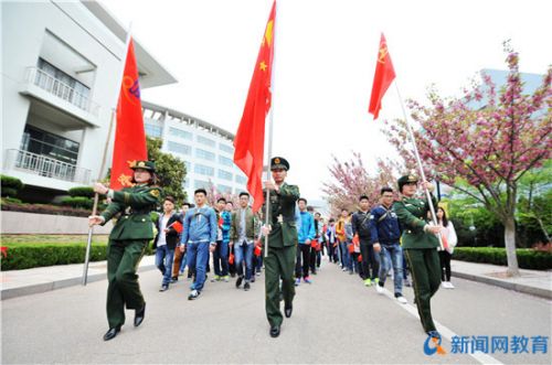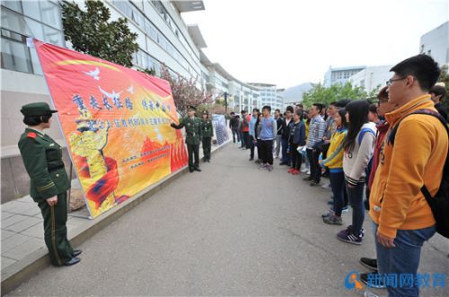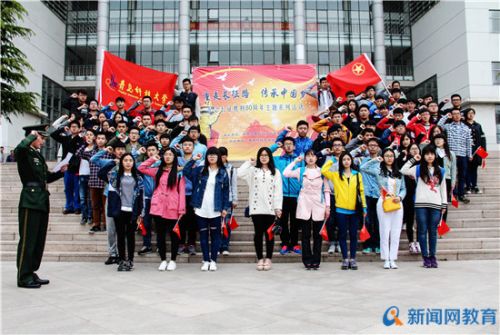 今年是红军长征胜利80周年,学校将喜迎五四青年节与纪念红军长征胜利80周年结合起来,通过弘扬长征精神,来引导广大青年学生传承五四精神。举办了“传承五四情,重走长征路”主题影展,设立了“重温五四情,弘扬先烈志”心语墙,邀请中韩边防派出所武警官兵入校宣讲五四和长征精神,带领青年学生开展“打革命背包”、健步行等活动,就五四和长征精神进行互动学习,与青年学生一起宣誓,表达青年学生传承先辈革命精神、励志成才报国的爱国情怀。此外,利用微信公众平台,发布“重走长征路”线上接力活动,以长征路线为依据设立节点,每个节点累计参与至一定人数进入下一节点,以此累计直到终点。