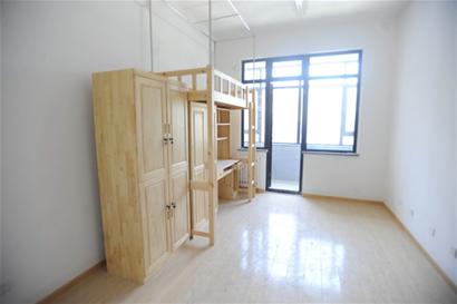 走进青岛6中,现代化的教学楼已经展露全貌,灰色的外墙配上玻璃幕墙显得艺术范十足。看过了青岛9中的教室,记者直奔6中学生公寓,一进门右手边是卫生间、左手边是洗手池,踏入室内,从阳台射进的阳光让整个房间显得明亮整洁。“这是一个四人间,下面是学生的学习空间,上面是休息空间,除了每个人床下侧的单独橱柜外,整个宿舍还配有一个大橱。”青岛美术学校副书记陈同法介绍说,宿舍居住面积为27平方米,地板使用的是强化地板,床、桌和柜子则采用樟子松材料。“我们的床使用的是樟子松,跟很多家庭里买的婴儿床使用的是同样材质。”