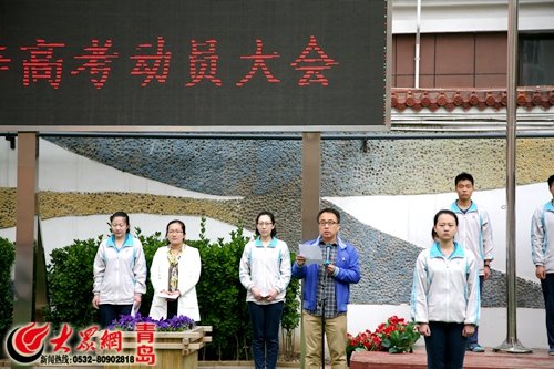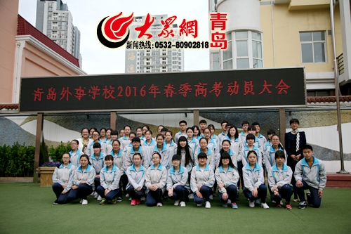 大众网青岛5月9日讯(记者 刘秋怡)“青春带走了什么,留下了什么?剩一片感动在心窝。时光的河入海流,终于我们分头。没有哪个港口,是永远的停留。脑海之中有一个凤凰花开的路口,有我最珍惜的朋友......”今天上午,随着红旗徐徐飘扬,青岛外事学校2016年春季高考动员大会隆重举行。