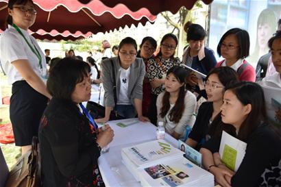 在该幼儿园内,处处充满“天然、绿色”的元素。孩子们在无忧无虑地玩耍、做游戏,家长们也没闲着,来自高校、教研机构、学校、幼儿园的近20名专家,为广大家长提供幼小衔接方面的专业咨询服务。