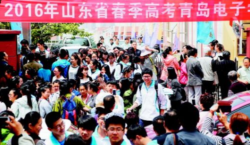 14日中午,电子学校南校考点,参加春季高考的学生们陆续走出考场。 本报记者 何毅 摄 5月14日,山东春季高考迎来最后一关——文化课考试。和夏季高考的情景相似,考点外围满了家长。“不管春季高考还是夏季高考,能考上大学才是好。”一位家长这样说。随着普高生可兼报春夏季高考,春考对口的本科大学越来越上“档次”,这条路成了不少学生的选择。逐渐被带火的春季高考今年首次迎来尖子生——“3+4”考生,学生素质提高了,专家形容它已经戴上“皇冠”,而春考背后的职业教育也在春天里大跨步前进。