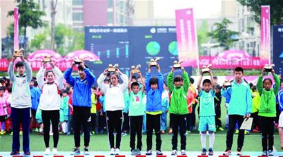 昨天下午,青岛市第26届“市长杯”校园足球联赛举行了闭幕式。本届“市长杯”校园足球联赛的希望之星率先进行了精彩的男女混合对抗表演赛,随后各个组别的名次和金银靴奖等奖项名花有主。