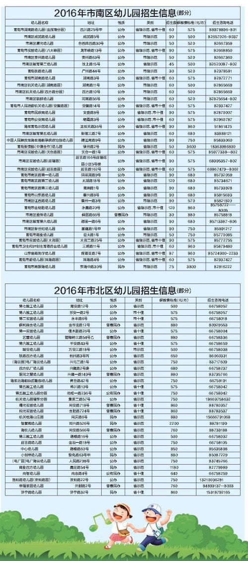 就近入园:去年市南区参与招生的幼儿园数量是59所,今年增加到了64所。今年该区共提供了3612个计划。今年市南区在公办园和普惠性民办园的招生范围上进行了一些改变。2016年根据各幼儿园所提供学位情况,将辖区内10个街道办事处自西向东按照相邻原则两两捆绑后,划分5个片区实行相对就近入园。一片区:八大峡和云南路街道办事处;二片区:江苏路和中山路街道办事处;三片区:八大关和湛山街道办事处;四片区:香港中路和八大湖街道办事处;五片区:珠海路和金门路街道办事处。根据要求,市南户籍适龄幼儿根据户籍所在片区,选择就近的幼儿园报名,需具有幼儿园所在片区常住户籍(户籍必须与父母或者祖父母、外祖父母在一起,且其父母或者祖父母、外祖父母为户主)和相应房屋产权证明的适龄幼儿。