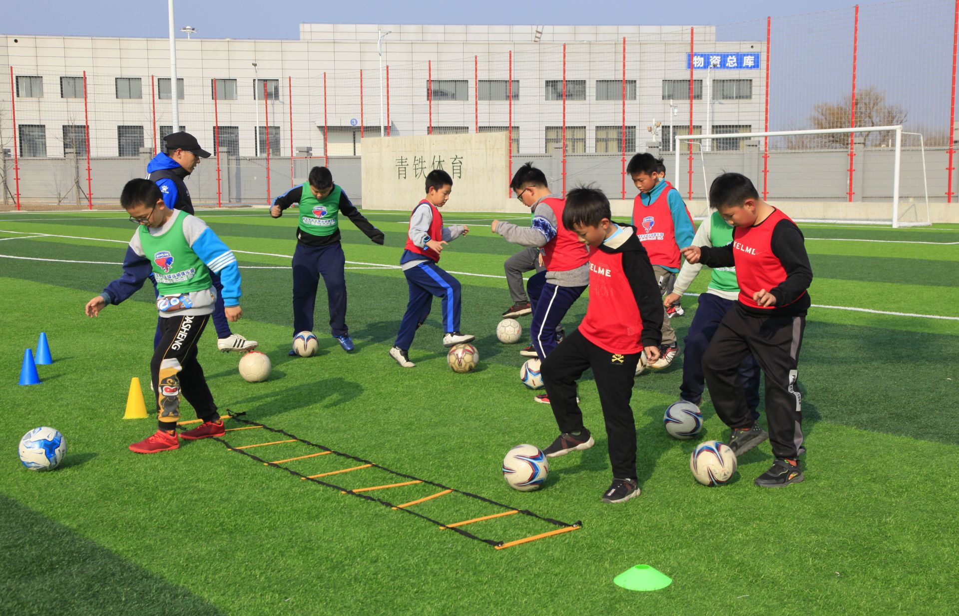 小朋友们在进行足球训练(盛军 摄)