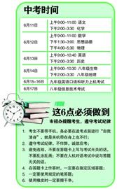 据介绍,今年中考时间略有变化。去年是笔试考试结束后,先考八年级信息技术,再考九年级英语人机对话,今年是6月15日至16日先考九年级英语人机对话,再考八年级信息技术。这主要是避免八年级考生连续考试,压力过大,也让九年级考生尽快完成考试。