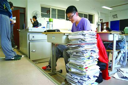 但小刘也表示,高中三年看似要学习这么多教材、做这么多张试卷,但实际只是个虚化的概念。“像是选修课本,那么厚的一本书,可能我们就学其中十几页的内容,有的还仅要求了解。试卷也是一样,很多时候老师发下的学案,看上去密密麻麻都是题目,但实际可以挑自己不太有把握的做,真正的试卷量没有那么夸张。 ”