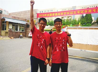 健谈的兄弟俩还告诉记者,他们不像其他双胞胎那样如影随形,因为父母为了让两个人有各自的发展和朋友,从幼儿园就把他们分在不同的班级,到了高中甚至去了不同的学校。但两人的成绩却不相上下,弟弟在一模考试中比哥哥高了十几分,哥哥却不服气地想赶超弟弟,俩人就这样在相互较劲和相互鼓励中一起走进了人生的第一个考场。兄弟俩还有一个共同的愿望:考进同一所大学。