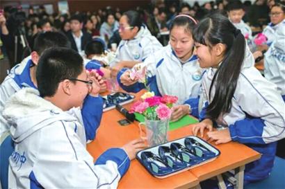 记者还注意到,这堂3D生物课不仅改变了传统的上课方式,就连上课时间也由原来的45分钟延长至1个小时,马林说,这正是学校在课改路上探索的另一个改变——长短课时。他说,徐风风老师的生物课《探究花结构,赏析花文化》一课整合了学科资源,把学生自主探究、合作学习与动手实践结合起来,充分发挥1个小时的最大效能,让学生充分实践、充分探究。“长课时必须这么长,短一分则不能达到实践探究目的。”青岛市教育局教研室生物教研员张玉坤在评课时说,徐老师的生物课成功地体现了学生主体性、德育渗透、快乐学习的理念,是一节成功的课,足以说明十年以来,实验初中实行选修课走班的成功经验。相对于徐老师一个小时的生物课,实验初中分校张东老师执教的英语课,却只有短短30分钟。课堂上,张老师用思维导图帮助学生复习了所学知识要点,随即转入听说应用环节,学生通过口语交际运用英语词组、句型,用中学,实践中再成长。张老师的课人文、高效,充分发挥了课件制作新的技术与文化融合。短短的30分钟,学生一直在“使用语言”,学生语言实践能力得到充分训练。“短课时有短的道理,时间虽短,语言应用拓展效率不仅没有降低,反而大大提升,这非常好地为人文、技术、高效结合的课堂做了尝试,是复习课的新典范。”市北区教育局英语教研员邵晓军说。据悉,在“互联网+教育”背景下,在新一轮课改开启之际,市实验初中以新一轮五年规划为重点,提出了创建全国知名、品牌卓越的办学目标,实施“一三五”计划,为快乐教育增值,“一”指一个方向:快乐引领、成就卓越;“三”指三个建设:现代化、信息化、集团化建设;“五”是五个卓越:制度卓越、团队卓越、课程卓越、成长卓越、环境卓越。据学校校长马林介绍,随着青岛市深化教育改革若干意见的出台,该校教育综合改革进程将加快步伐,学校的特色发展也进入了关键期,聚焦改革的突破口,在重点领域和关键环节,马林说,要实现四个方面的突破:要以深化课程改革为核心,实现育人模式的新突破;要以现代化学校建设为龙头,实现总体办学实力新突破;要以信息化建设为动力,实现教育创新新突破;以集团化办学为抓手,实现开放办学新突破。在这种超前发展思想的指导下,学校推出了长短课时探索的公开课。
