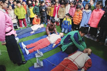 随后,学生们还进行了包扎演练,每3个学生为一组,一名学生充当伤员,另外两名学生为其进行包扎。别看学生们是刚刚学会,但是包扎起来还是有模有样的。桦川路小学校长金延清说,应急安全教育旨在让学生们减少因突发事件造成的伤害,提高师生的安全应急与自救能力。