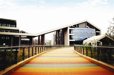 “彩虹桥”将艺术楼、教学楼、餐厅、体育馆等连在一起。