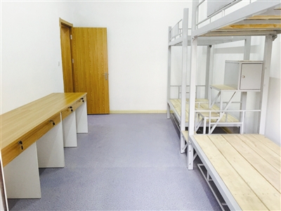 教学楼依然按照年级顺序排列,高一、高二、高三年级教学楼地面铺装依次以绿色、蓝黄相间、蓝色为主色调,但每一层的色彩模块也用心地做到不尽相同。记者发现一个人本关怀的小细节,教室、办公室全部南向建设,每个教室和办公室门口,都有一个大色块的标识,无声地提醒着师生。教师办公室及教育教学管理部门则散落在各楼不同位置,方便师生,便捷服务。