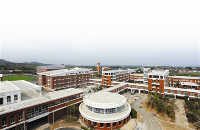 简约与融合,是新校区的规划和建筑特色。教学楼、科技楼、行政楼、艺术楼等多个楼座被连廊连在一起,内部空间设计充分尊重师生学习生活习惯,以便捷、舒适、自然、环保为出发点,将教学与实验融合、交流与学习融合、欣赏与体验融合、运动与休闲融合、生活与创意融合,使空间传达现代教育理念,让科技融入办学特色。