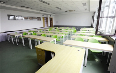 实验高中教室以白色为主基调,宽敞的空间中点缀着绿色、米黄,简约中透着明朗大方之气;教室内取消了讲台,拉近了师生间的距离;课桌面积相较原有增大了58%,适应了高中学生的多元学习需求;灵活的课桌椅布局,可随时、随型组合,符合学习共同体教学新模式要求;教室里配有操作台,可以方便学生随时随地做实验的需求;每个教室都拥有新风系统、VRV空调系统,设置内开内倒的窗户;走廊内设有储物柜,方便分层走班教学,适应新高考改革需求。在这现代舒适的教学环境中,学生得以健康、个性成长,尽显实验高中新人文教育特色。