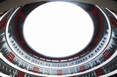 在包罗万象的教学综合体内,圆形的社团活动区位于四个U形综合楼的中心,这里既是学生举办社团活动的中心,也是四个综合楼的交通中心,更是整个校园的中心,四通八达,寓意社团活动在现代教育中的重要性。但见社团活动区的中心镂空,两层架空,以中国红为主色,整体空间开敞通透,高端大气。