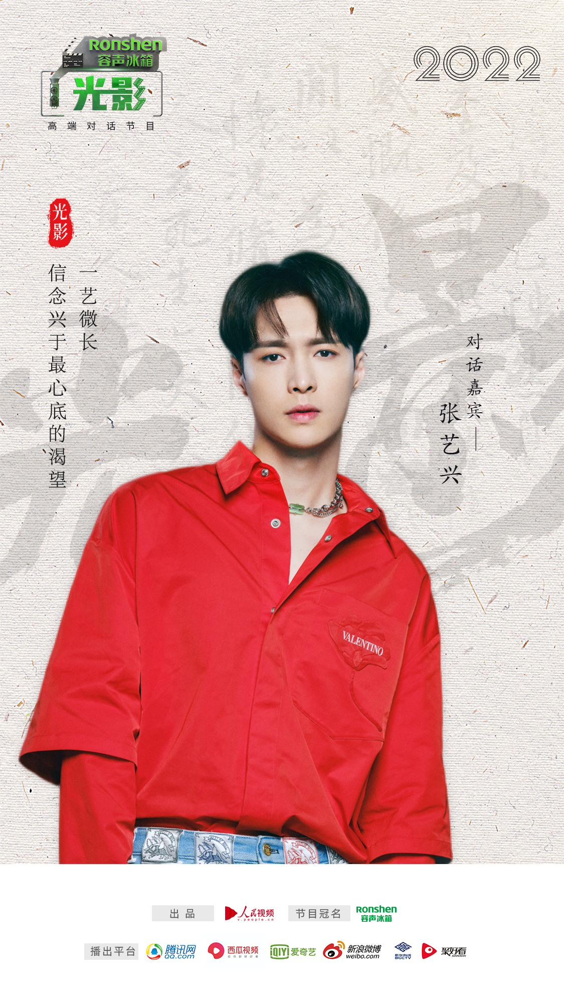 作为歌手出道的张艺兴,近年来演技也越来越可圈可点,尤其在最近热播的电视剧《相逢时节》中,他所饰演的宁恕一角,将人物的性格生动细腻的展现在观众面前。虽然还有进步的空间,但也正如他在做客由人民网人民视频出品、容声冰箱冠名的高端对话节目《光影》中说的那样,“我是一个专业的歌手,在这个领域我敢说自己是专家,而在影视方面我是一个初学者,我需要跟好的导演学习,跟好的前辈学习,不急于一时。”