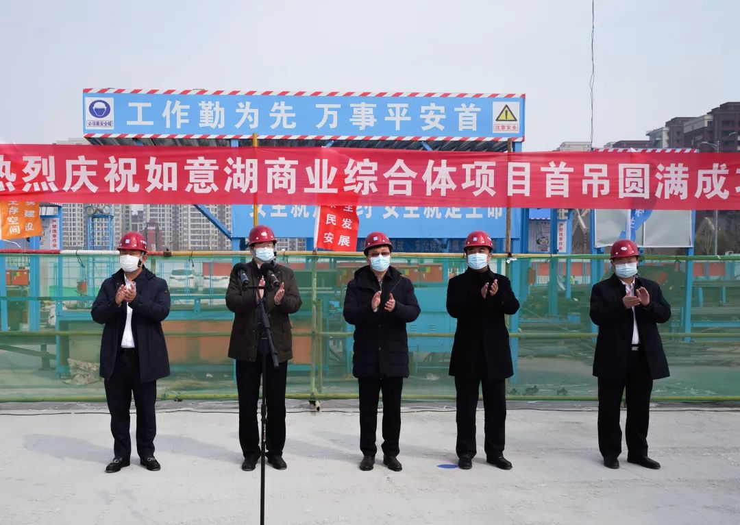 仪式现场,随着陈勇总指挥“开始起吊”指令的下达,吊装正式开始,精准挂钩、慢起吊、轻落位,如意湖商业综合体项目钢结构首吊顺利完成安装。